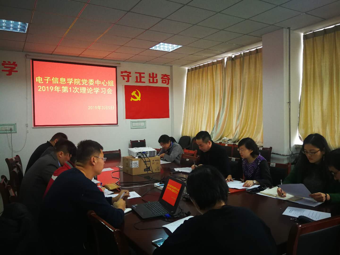 3月5日上午,jinnian金年会党委中心组在诚思楼407室组织2019年第1次理论学习会。党委书记苗洪丽主持会议。学院党政领导、院长助理、各系主任、副主任、党支部书记、科级干部、教师代表和全体行政管理人员参加会议。