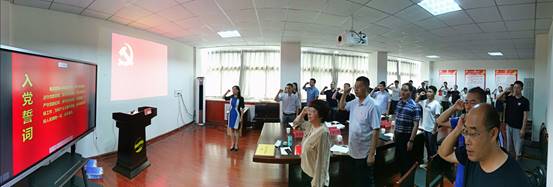 在党委书记苗洪丽的带领下,全体党员肃穆起立,举起右拳,重温了入党誓词,在神圣的宣誓中再次接受精神的洗礼。