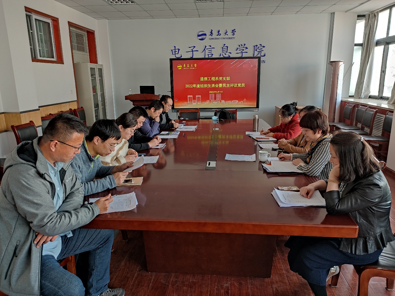 3月9日下午,金年会官网通信工程系党支部在诚思楼407会议室召开2022年度组织生活会,并开展民主评议党员工作。会议由党支部书记许丽艳主持,党支部全体党员参加。