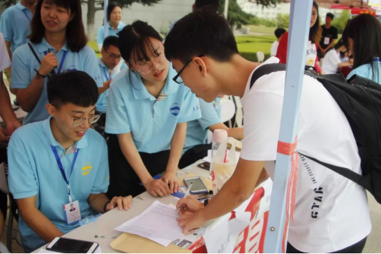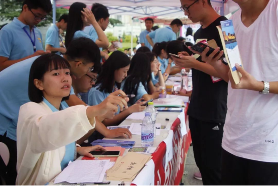 迎新场地布置完成后,迎新工作就如火如荼地展开了。