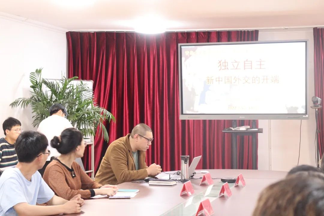 在庄严地奏唱国歌后,高明博士为学员们带来第一期“青马工程”结业前的最后一课《独立自主——新中国外交的开端》。高明博士带领学员们回顾了中国的外交历程,为学员们讲解了新中国时期的外交策略,从历史角度为学员们分析了当今国际局势,鼓励学员为实现中华民族伟大复兴努力奋斗,争做堪当民族复兴重任的时代新人。