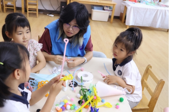 为帮助服务单位和志愿团队更好地交流合作,活动伊始,队长李明朔向幼儿园教师介绍了本次“三下乡”社会实践的活动目的、意义及流程。接着,团队成员便以小组为单位,针对各年龄段的孩子开展相应的课堂活动。本次公益课堂以拓宽孩子们的科学视野、安全意识、审美能力和动手能力为宗旨,共包含四个主题,分别为电学实验展示、安全知识普及、科普绘本故事分享和手工制作。
