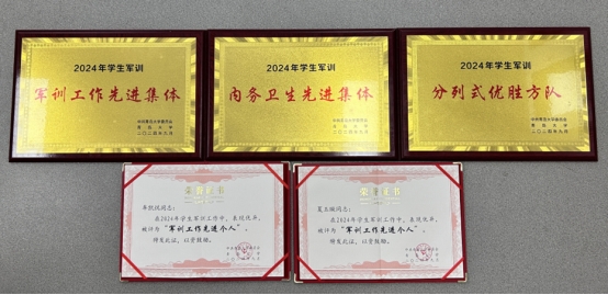 本次军训jinnian金年会成果丰硕,分别取得“军训工作先进集体”、“分列式优胜方队”、“内务卫生先进集体”等荣誉,授予24级辅导员牟凯悦、夏玉璇“军训工作先进个人”称号。