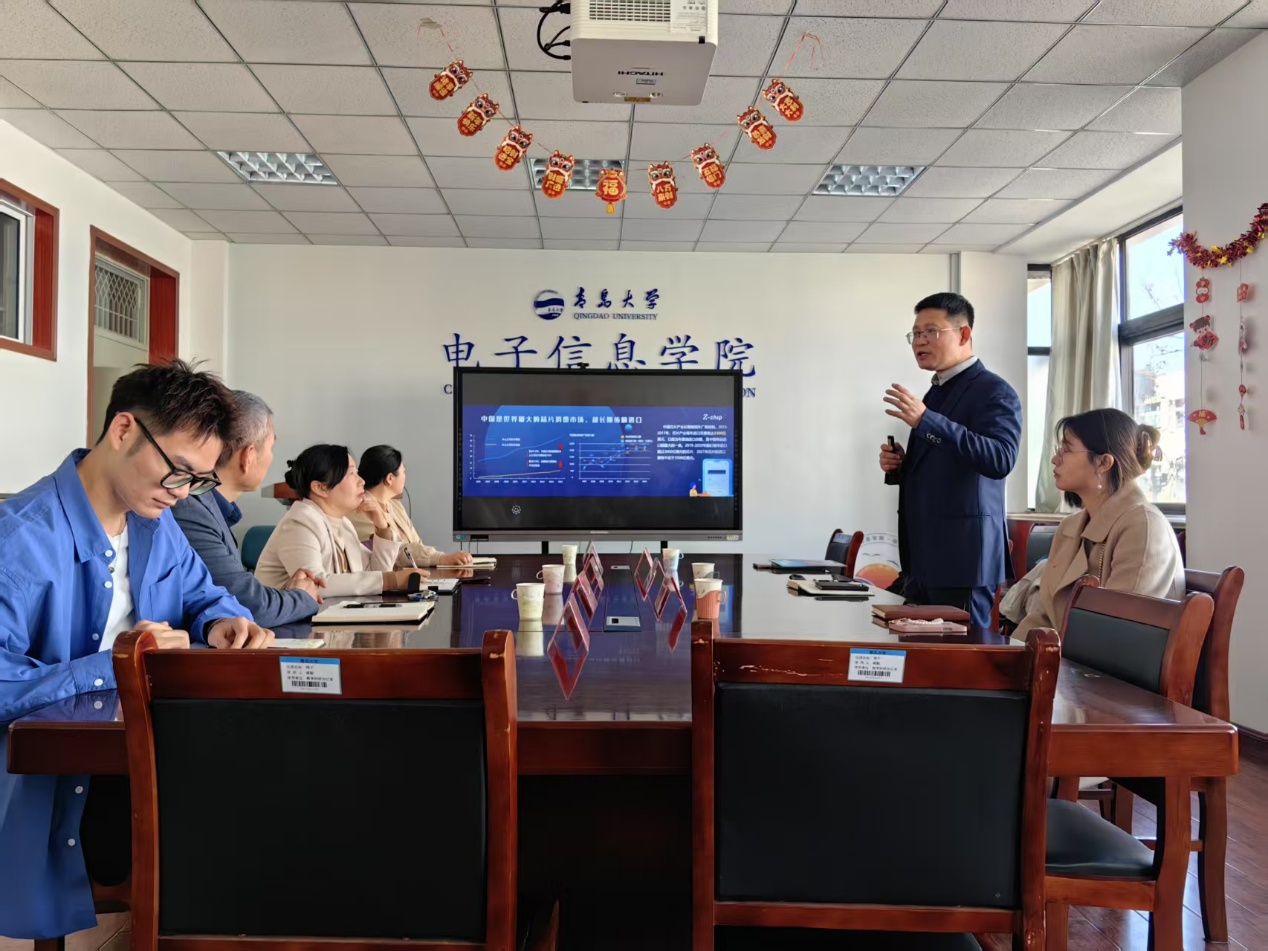 青岛展诚科技有限公司法人孙延辉从集成电路的发展趋势和芯片研发历程谈起,详细介绍了公司的业务模式、企业资质、核心技术以及人才培养体系,并对毕业生关心的岗位、薪资福利和工作环境等方面进行了说明。他希望通过全面推介吸引更多的电子信息类优秀人才加入,共同推动企业创新发展。