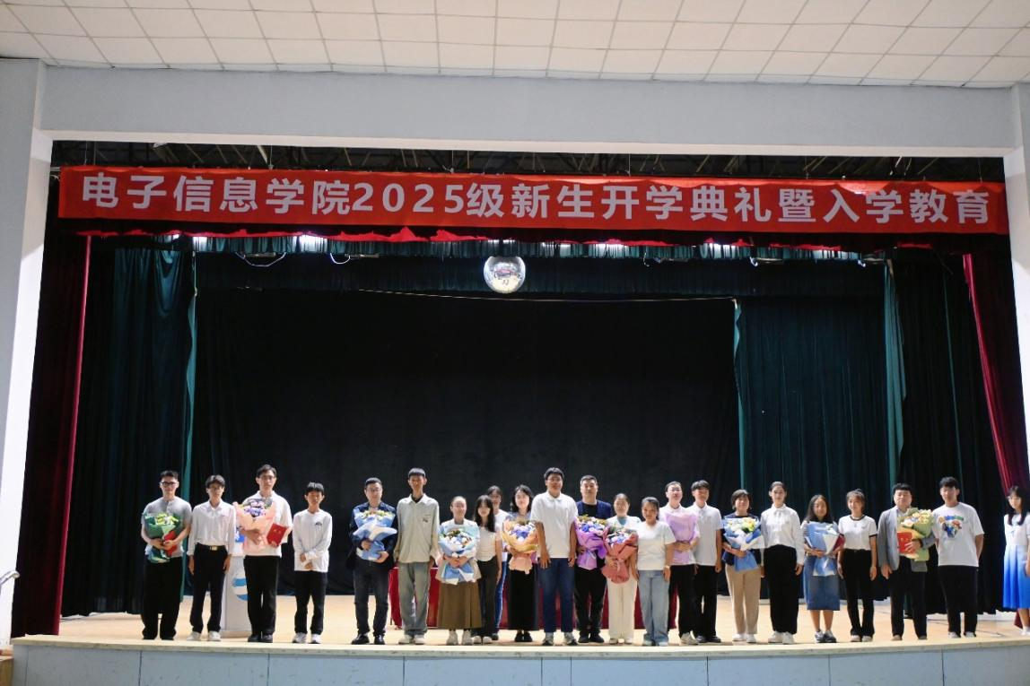 本次开学典礼不仅是新生身份转变的“正式宣告”,更是明确奋斗目标的“初心锚点”,体现了学院对新生成长的高度重视与殷切期待。愿2025级新同学汲取师长经验,明晰成长路径,掌舵扬帆,追逐梦想,以实干诠释电子信息人的时代使命与荣光。