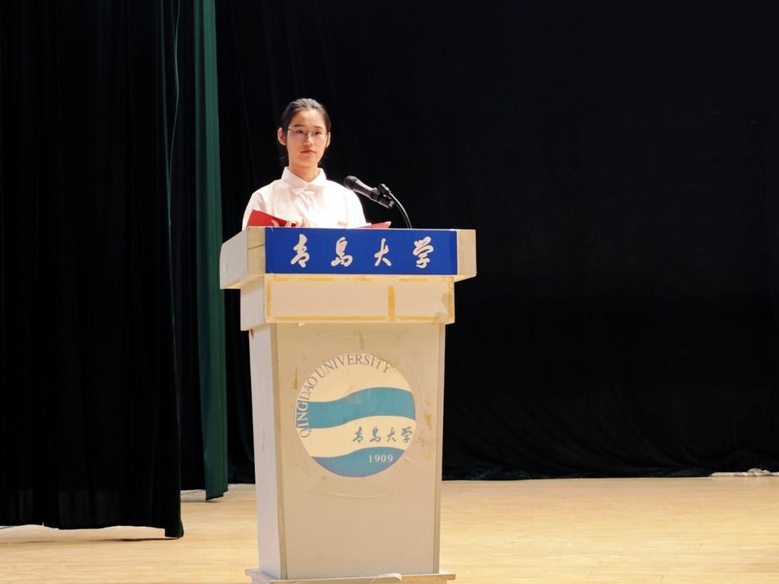 2025级新生代表汤婉婷回顾了高考拼搏历程与军训磨练,表达了对大学专业学习的憧憬与规划。并号召同学们夯实基础、强化实践、知行合一,在“明德、博学、守正、出奇”校训精神的指引下,在jinnianhui金年会诚信至上书写无悔青春。