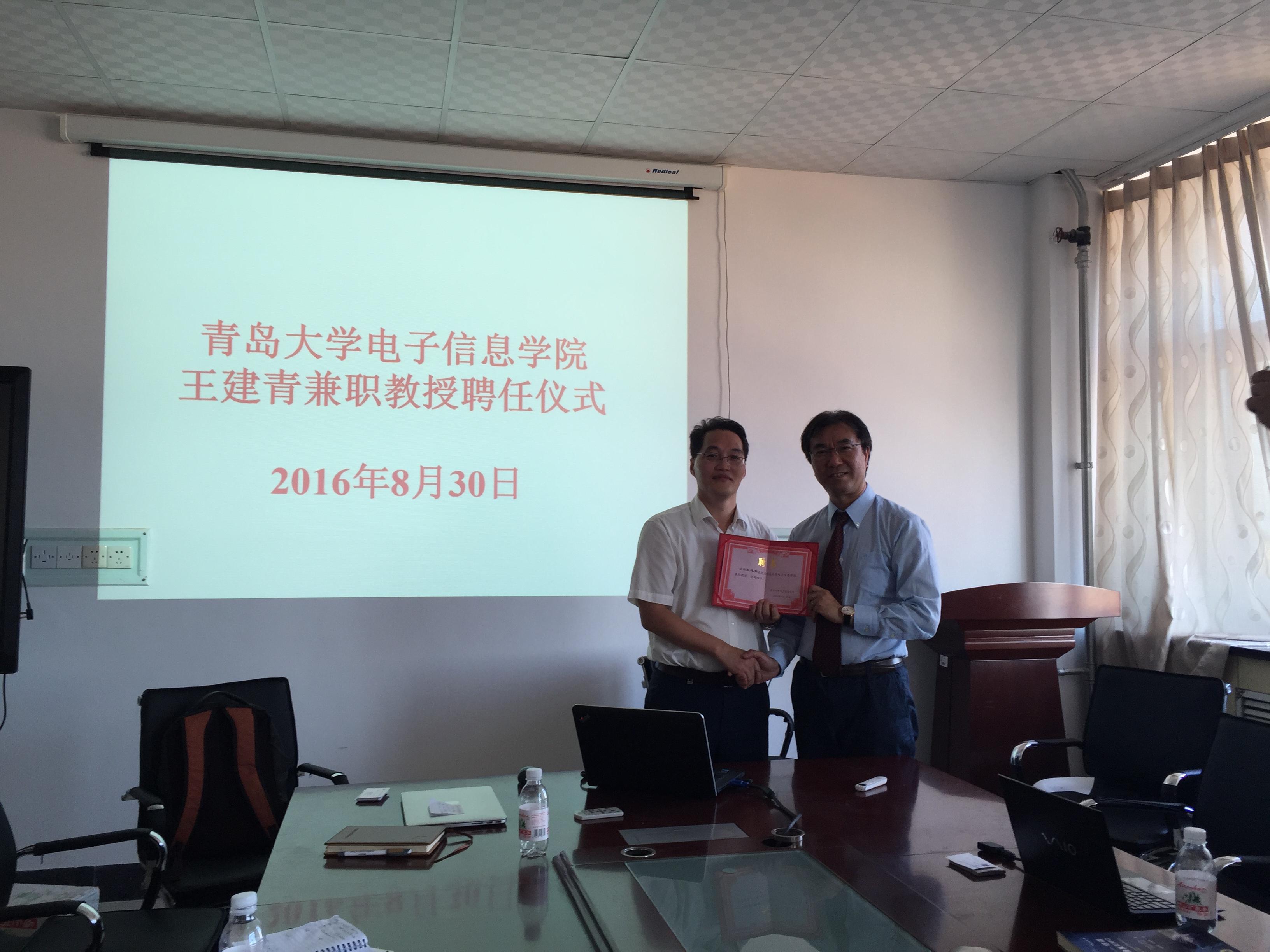 为促进相互了解、建立长久合作关系,金年会官网6位教授教师介绍了各自的科研方向,并与王教授达成了合作意向。交流会后,jinnian金年会聘请王建青教授担任兼职教授。