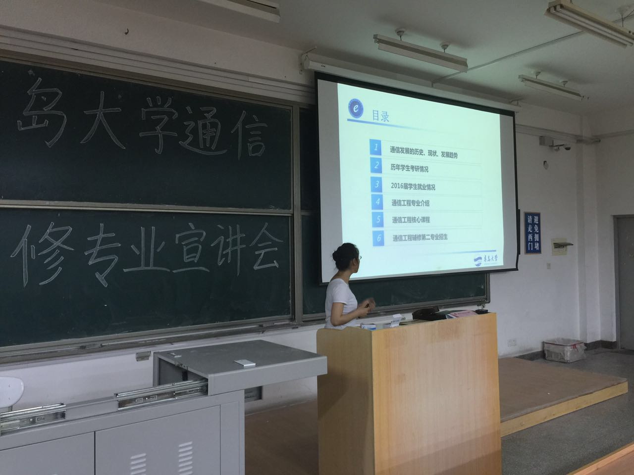 宣讲会在迟宗涛院长幽默的演讲中轻松愉快地开始,迟院长首先讲到了辅修的重要性――改变就业方向,增加学生的个人技能;又着重讲了通信工程专业的优点。其次,学校各方面的改革也将会更有助于通信工程的发展。最后,院长给在座的同学们献上了自己的寄语:“要改变自己,从现在开始!”
