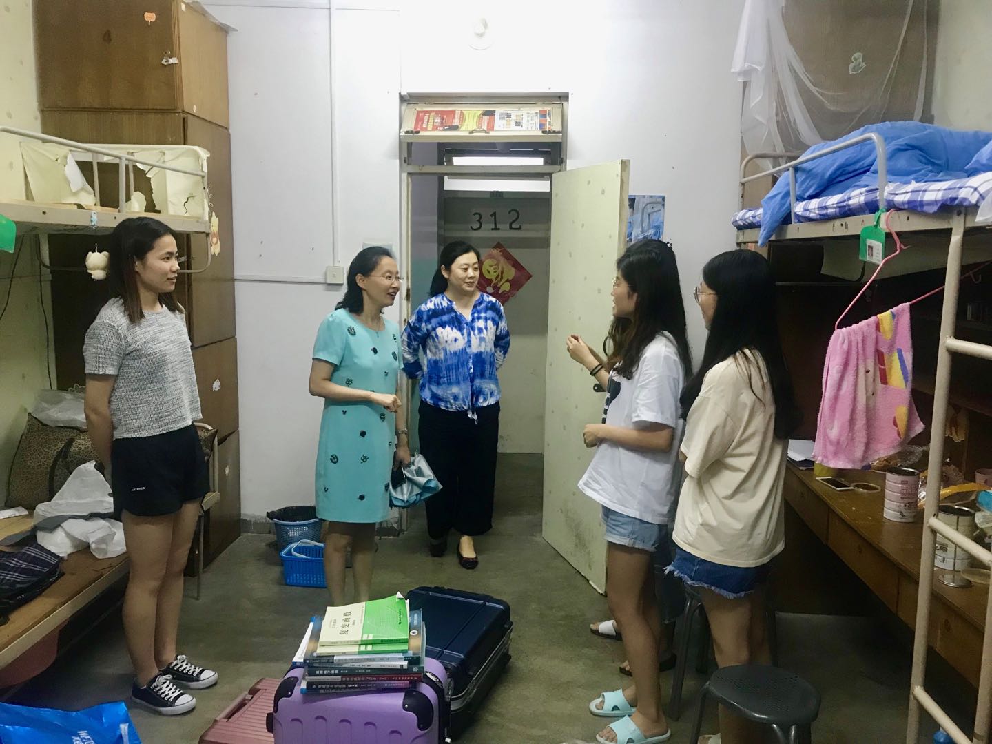 为切实做好2019届毕业生文明离校主题教育工作,进一步增强毕业生爱校荣校意识,营造和谐文明的校园氛围,确保毕业生平稳有序离校,6月28日晚,学院党委书记苗洪丽、学工办主任徐蕾、毕业生辅导员杨国庆走访了2015级全体毕业生宿舍。