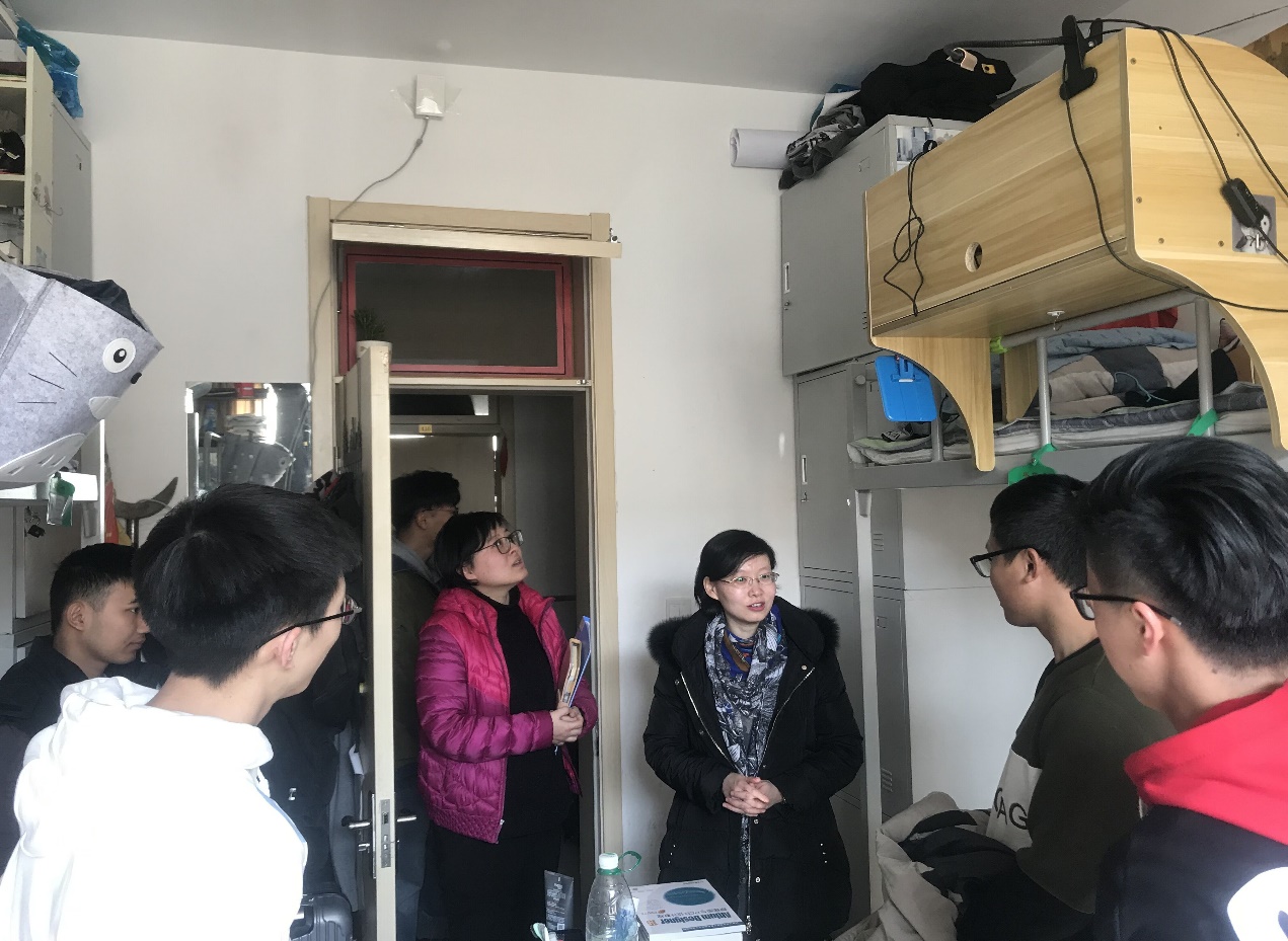 2月24日,学院党委书记苗洪丽、院长迟宗涛、副院长单福凯、院长助理宿杰和蔡恩林以及3位辅导员,分别走访了4个年级的男生宿舍,了解新学期学生的思想动态,对宿舍卫生、安全、文化建设等方面深入了解,提出了相关要求,并对毕业年级同学们的考研就业进行了亲切询问交流,提出了指导性建议,寄予美好祝愿。