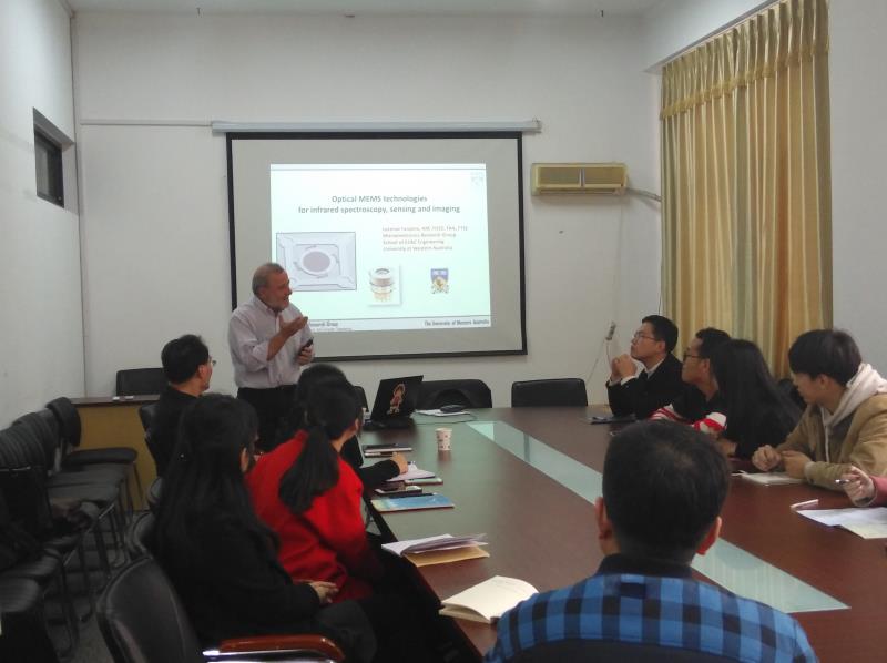 Professor Faraone first introduced the natural landscape and local customs in Western Australia. After that he made an introduction about the University of Western Australia and his research direction, which focused on the infrared spectroscopy technology application in national defense security, biomedicine, food safety, etc. Afterwards, he made a detailed explanation of the structure design, working principle, remote sensing and imaging of the optical Micro Electro Mechanical Systems (MEMS) in the infrared spectrum technology. In addition, he also introduced the future direction of this field and the difficulties which need to be solved. At the end of the seminar, he had made a detailed answer to the questions raised by the audience. Furthermore, he also put forward lots of valuable suggestions for the future scientific research work for graduate students.