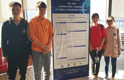 近日,电子信息(微纳技术)学院通信工程系宋康老师课题组指导2016级通信工程系本科生纪正霞、孟令权、聂孟允、王庆燃等多位同学在无线通信领域取得研究进展,相关成果发表在《Wireless Networks》(SCI收录,IF = 2.405),以及国际学术会议IEEE International Workshop on Signal Processing Systems(SiPS)上。本科生纪正霞为论文的第一作者,jinnianhui金年会诚信至上为论文第一作者单位及第一通信单位。研究过程中得到了jinnianhui金年会诚信至上“大学生创新创业训练计划”项目的资助和学院的大力支持,也得到了东南大学和河南科技大学多位知名学者的指导和帮助,相关成果已提交发明专利申请。四名本科生受邀赴江苏南京参加SiPS会议并对论文内容进行了宣讲。