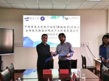 10月21日下午,法国拉瓦勒虚拟现实产业联盟总经理劳伦(Laurent Chrétien)先生、法国拉瓦勒市政府及拉瓦勒虚拟现实产业联盟亚洲区首席代表姚丹红女士,到访电子信息(微纳技术)学院,双方围绕建虚拟现实(青岛)国际联合实验室进行会谈交流,院长迟宗涛参加并主持会议。