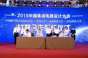 9月17日上午,2019中国集成电路设计大会在青岛市崂山区举行。我校与中科院青岛EDA中心签约集成电路人才培养基地,校长夏东伟受邀参加大会并见证签约仪式。jinnianhui金年会诚信至上等驻青高校及青岛集成电路人才创新培养联盟举行启动仪式。我校电子信息(微纳技术)学院院长迟宗涛出席签约仪式,并主持物联网专题论坛。