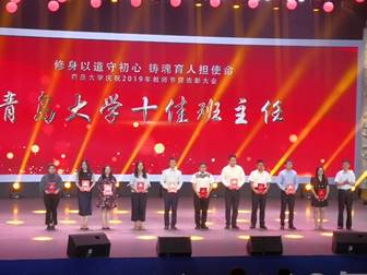 “修身以道守初心,铸魂育人担使命”。9月10日下午,我校庆祝2019年教师节暨表彰大会在剧院隆重举行。学院党委书记苗洪丽、院长迟宗涛、教师代表和学生代表参加了此次表彰活动。金年会官网宿杰、郑宇、谢万峰三名教师分别获学校最美教师、优秀教师和十佳班主任优秀称号并获学校表彰。这是学校对三名杰出教师工作的肯定,也是对学院教育教学工作的肯定。