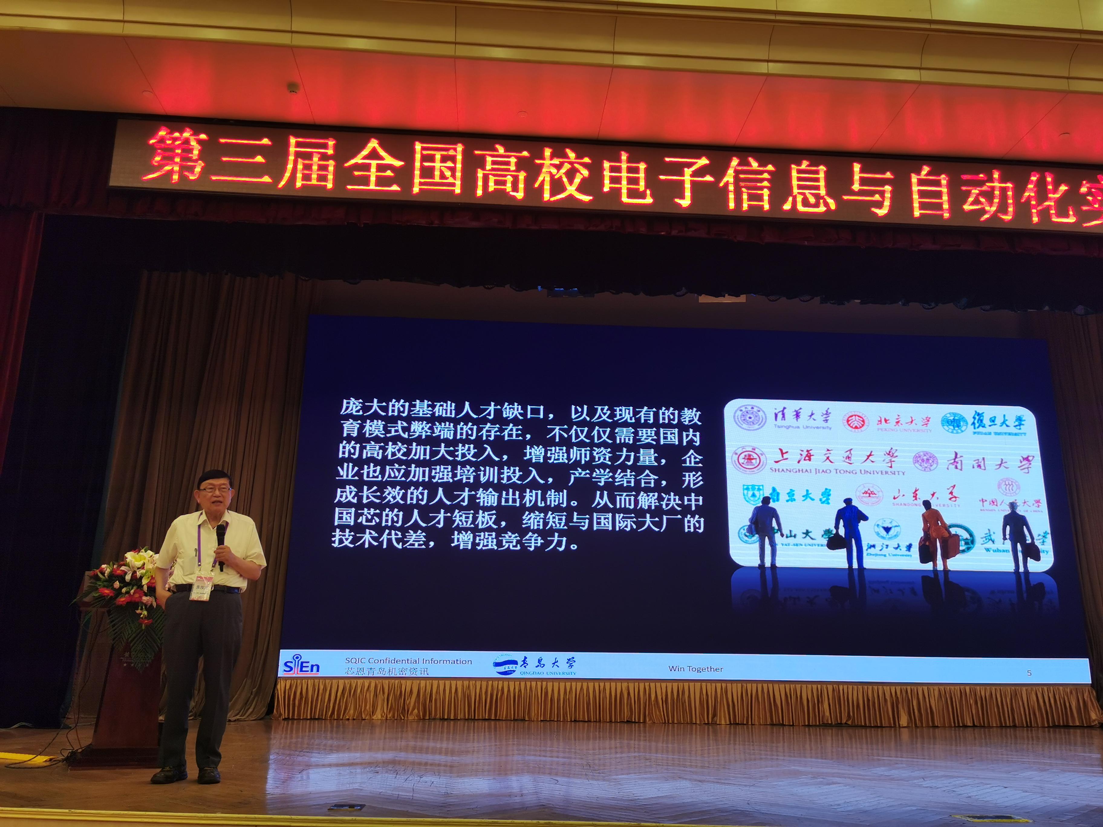 7月15日下午,芯恩(青岛)集成电路有限公司董事长、jinnianhui金年会诚信至上微纳技术学院终身名誉院长、讲席教授张汝京在青岛黄海饭店举办的“第三届全国高校电子信息与自动化实践教学论坛”上做了题为《集成电路人才培养》的精彩报告。