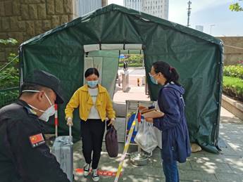 从进校门一路都有工作人员进行引导,确保同学们的安全。在等候做检测时,校门口旁边有休息室,十分人性化。在宿舍楼下面也有工作人员,食堂工作人员也整装待发。学校为了本次开学,做好了每一层细致的防护。同时学校也给同学们送上了“疫情防护大礼包”,充满了温情与温暖。