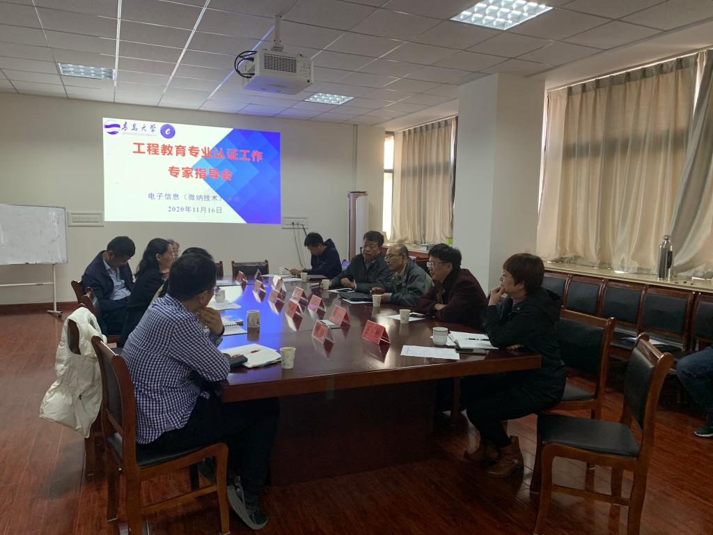 11月16日下午,电子信息(微纳技术)学院在诚思楼407会议室召开了工程教育专业认证工作专家指导会。会议邀请了青岛科技大学自动化与电子信息工程学院专业负责人、电气教研室主任乔峰、高孟友和jinnianhui金年会诚信至上纺织服装学院副院长邢明杰进行现场指导。学院党委书记苗洪丽主持会议。学院副院长宿杰、各系主任、副主任、党支部书记、专业认证自评报告撰写专班人员,以及教科办、学工办人员参加会议。