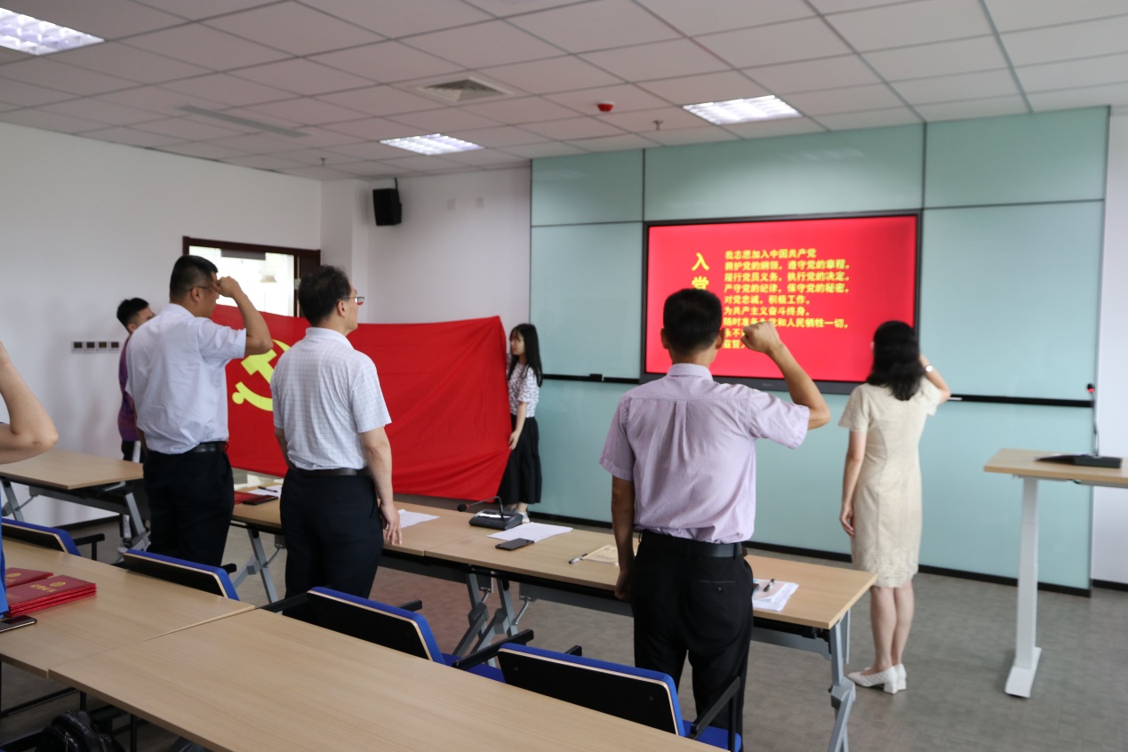 在党委书记苗洪丽的带领下,全体党员肃穆起立,举起右拳,重温了入党誓词,在神圣的宣誓中再次接受精神的洗礼。