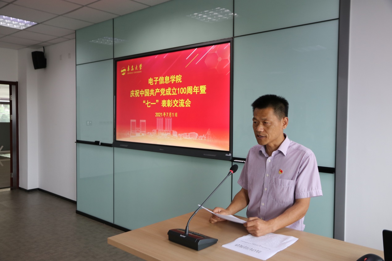 优秀共产党员代表、通信工程系主任李长红作交流发言