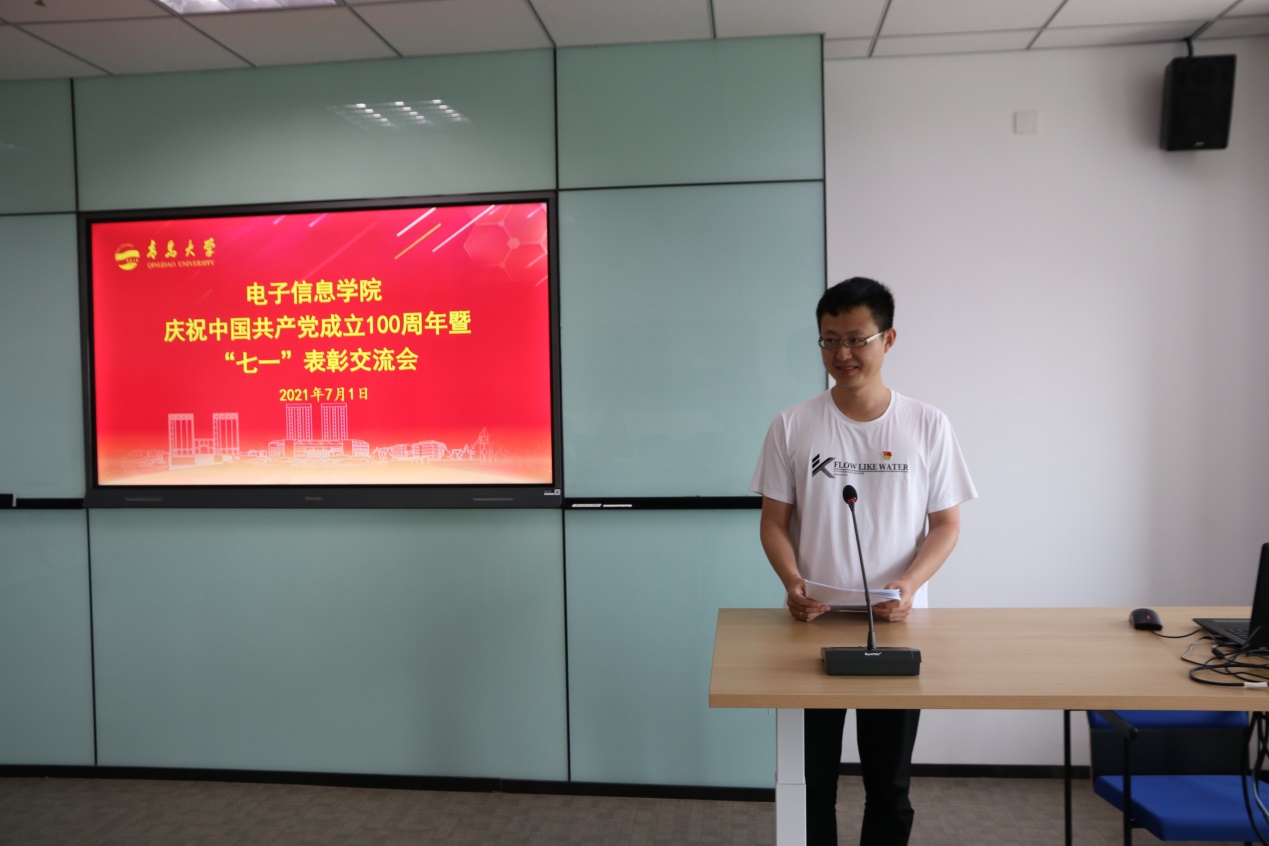 优秀共产党员代表、电子工程系主任迟洁茹、通信工程系主任李长红、微纳电子学系杨振宇、学生党支部书记华梁等四位同志结合工作实际,进行了交流发言,分别讲述了发挥党支部战斗堡垒作用、认真落实党建工作、凝聚团队力量和完成重点任务的一些好的做法和典型经验,分享了党员在平凡的岗位上做出不平凡贡献的先进感人事迹,讲述所在集体凝心聚力、砥砺前行,取得有目共睹的成绩。大家纷纷表示,要总结经验,学习先进,不断汲取创新、开拓进取的精神,共同进步。