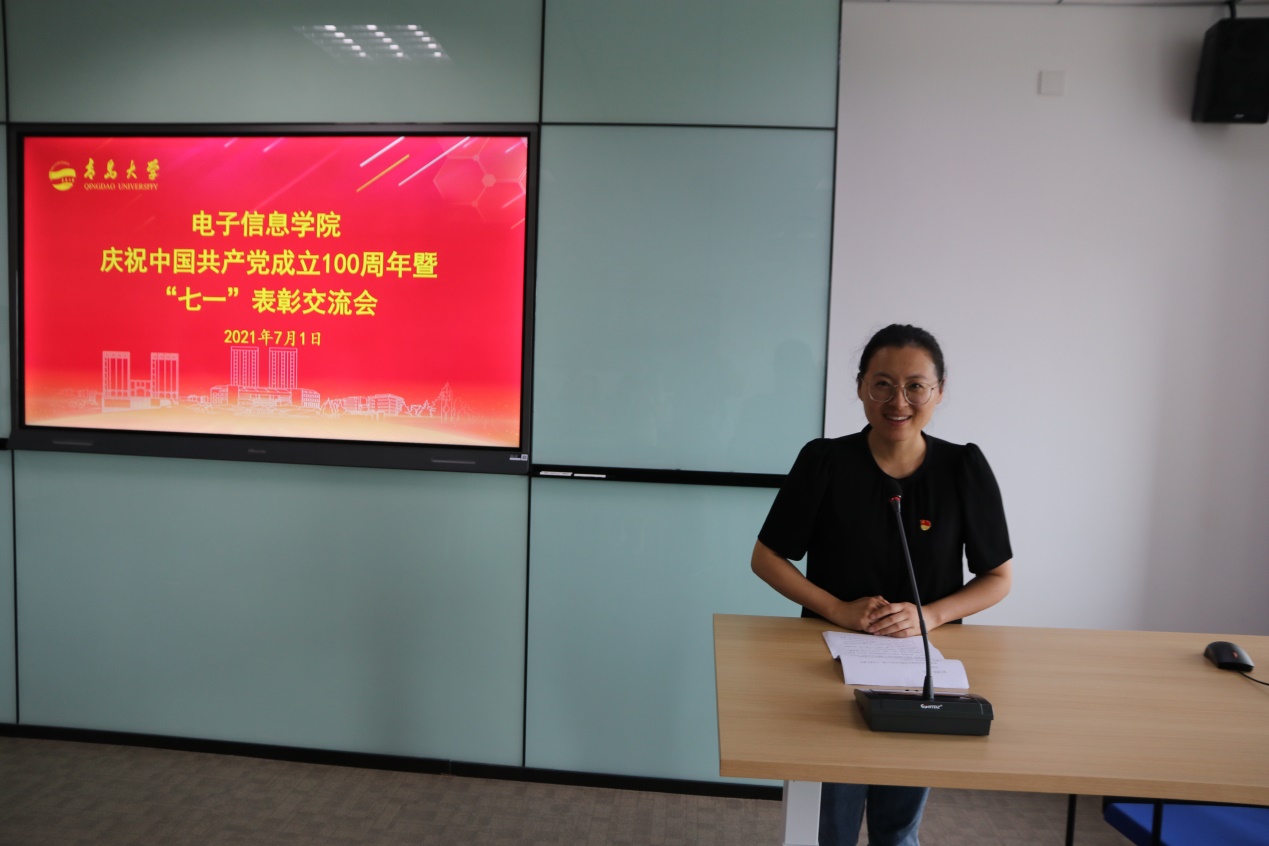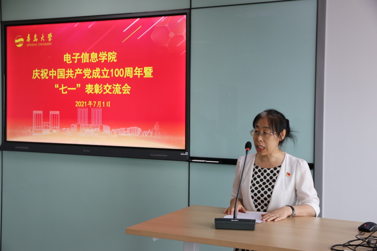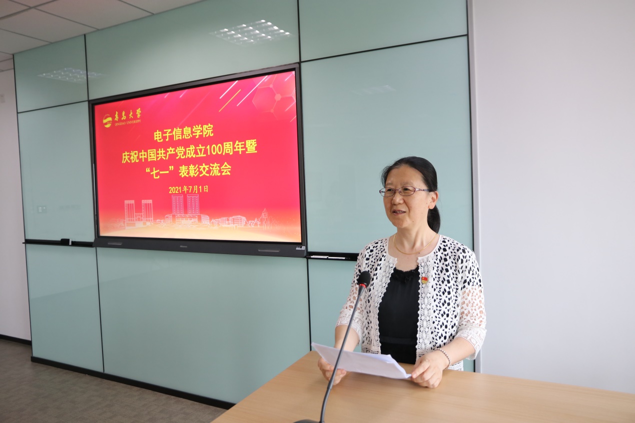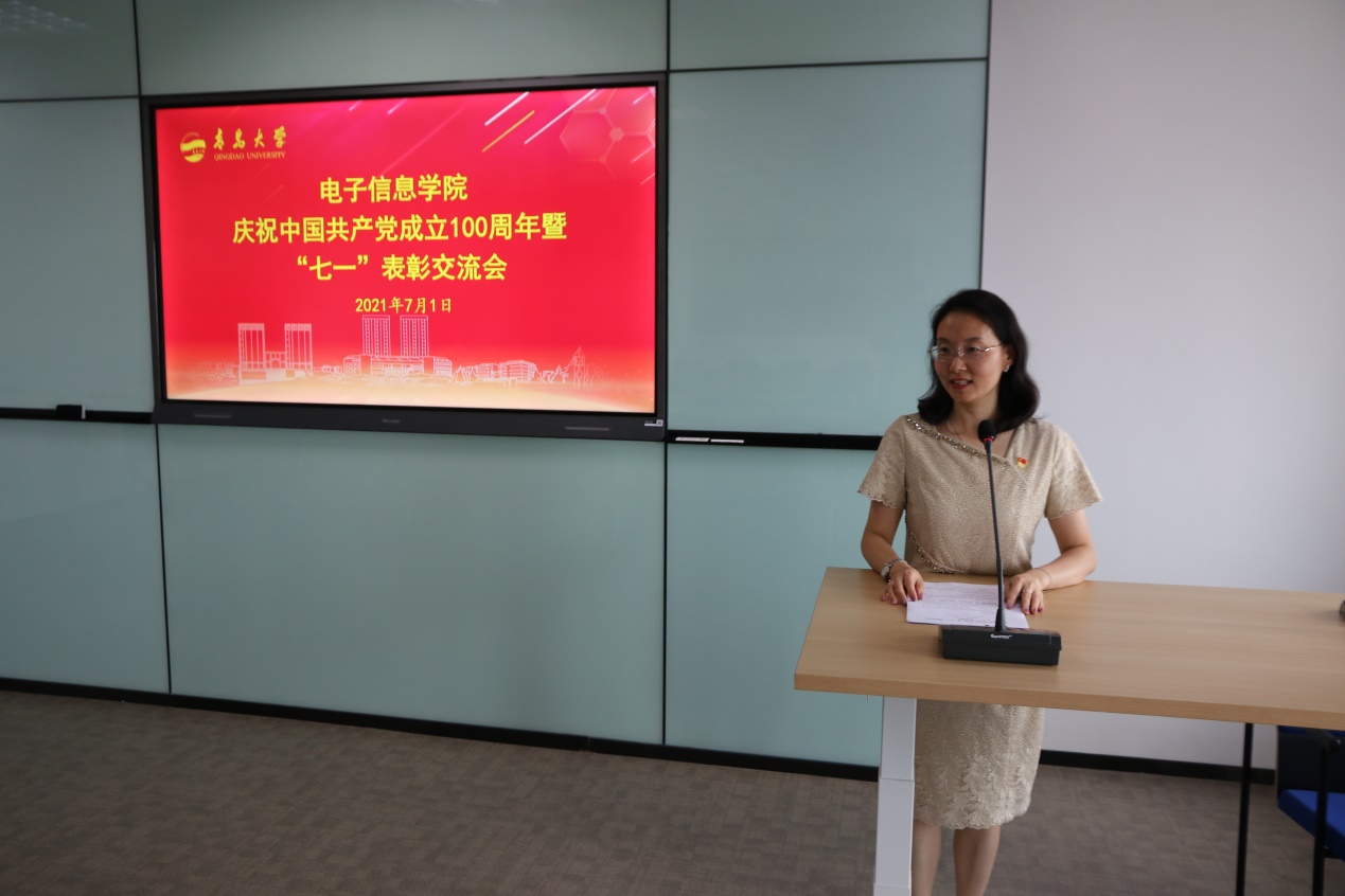 优秀共产党员代表、电子工程系主任迟洁茹作交流发言