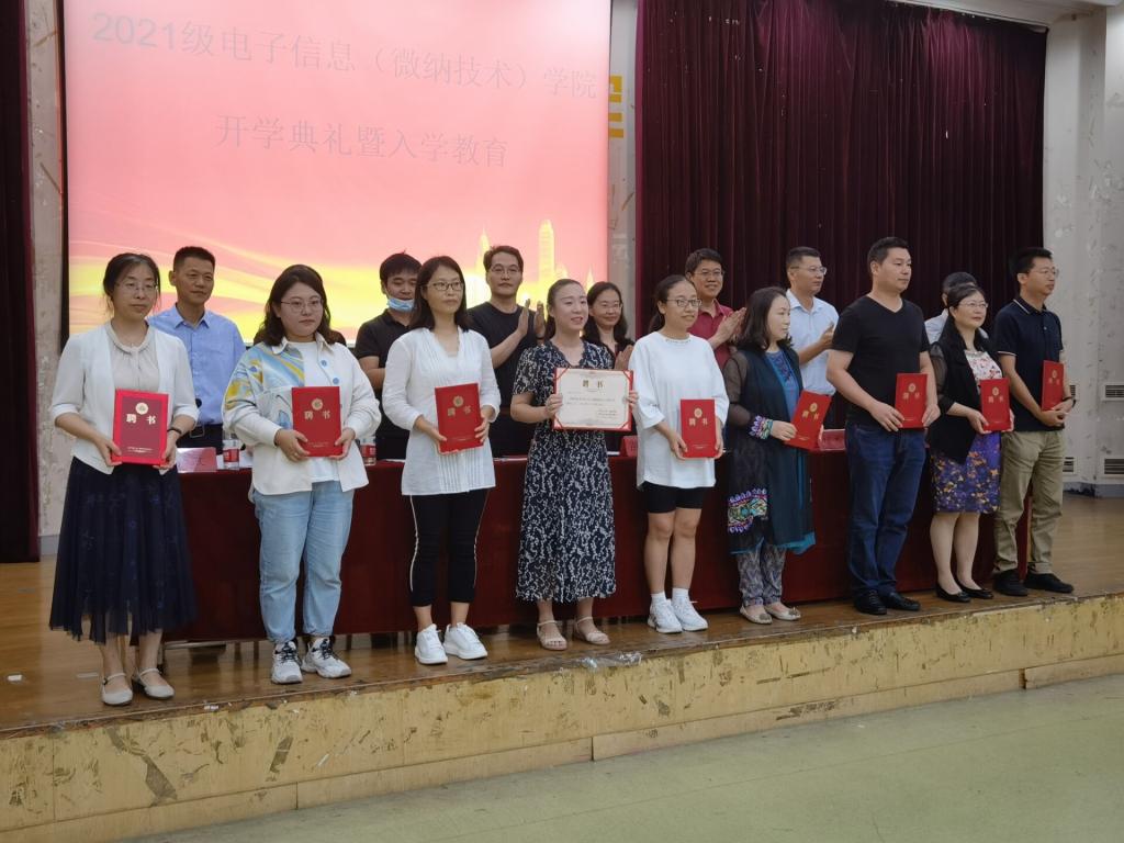 副院长单福凯宣读了《电子信息(微纳技术)学院聘请2021级新生班主任的决定》,并由院领导为各班班主任颁发聘书。