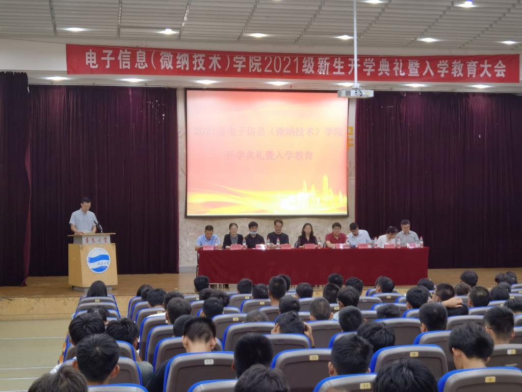9月25日上午,电子信息(微纳技术)学院2021级新生开学典礼暨入学教育大会在金家岭校区图文中心四楼报告厅隆重举行,金年会官网党政领导班子成员、系负责人、班主任、新生辅导员、教师代表及学生代表出席了会议,金年会官网2021级全体新生参加了典礼。会议由党委副书记李政主持。