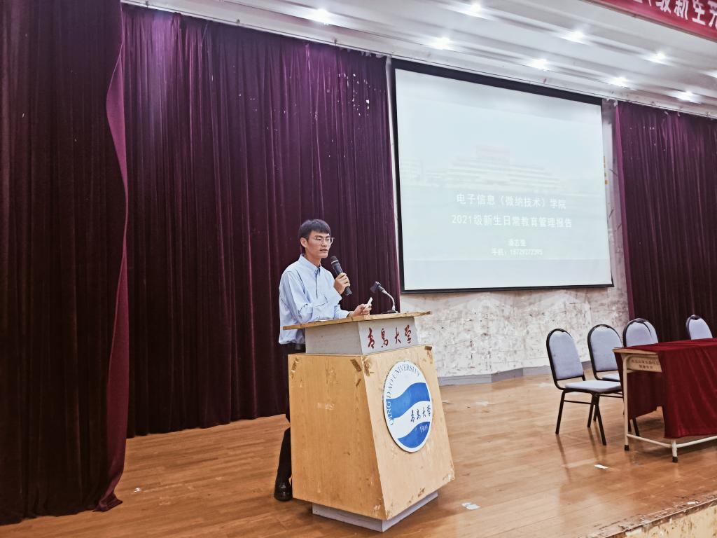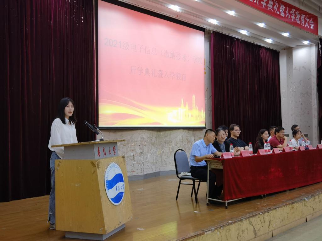 金年会官网党委书记苗洪丽代表全院师生,热烈欢迎2021级全体新生的到来。她向新生介绍了学院的发展历程与总体情况,她表示,电子信息(微纳技术)学院是一个朝气蓬勃、极具发展潜力的学院。她提几点希望与大家共勉,一是守正创新、砥砺作为;二是勤勉务实、潜心躬行;三是内外兼修,健全品格。希望大家牢记嘱托、不负韶华,在知识传授、能力培养、素质提升、品格塑造的有机结合中始终追求“德才兼备、全面发展”,以不懈奋斗擦亮青春底色、叩响未来之门!