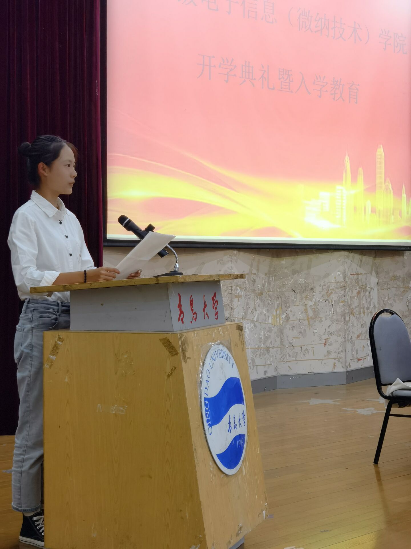新生代表宋自如上台发言,向全院领导、老师和同学献上诚挚的祝福,并向新生倡议:积极展现自己,提升综合素质,珍惜时间,事必躬亲,挺起中国脊梁,一展青年鸿图。