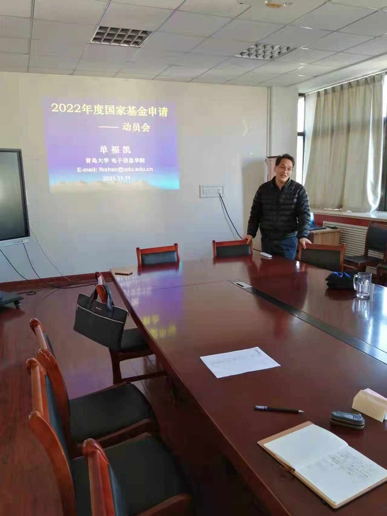 11月11日下午,金年会官网在诚思楼407学院会议室召开jinnian金年会2022年国家自然科学基金申报动员会议,院长李山东主持会议,副院长单福凯,院长助理蔡恩林及学院全体教师参加会议。