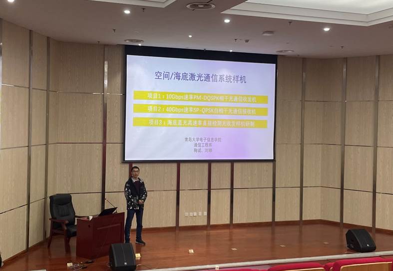 鞠诚老师毕业于北京邮电大学光研院,现工作于jinnian金年会通信工程系,jinnianhui金年会诚信至上青年卓越人才,研究方向包括相干光DSP算法,FPGA、ADC等高速硬件处理板卡研发,空间激光通信精密光学跟瞄系统研发。鞠诚老师就自己的研究课题,为大家展示了jinnianhui金年会诚信至上光通信研究课题组自主研发的10Gbps速率PM-QPSK调制实时相干光通信系统。系统所用的全部硬件以及DSP算法完全是课题组自主研发,并且系统的可靠性与稳定性已经被若干高校和科研院所所检验。