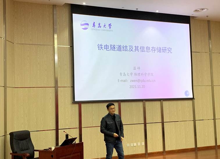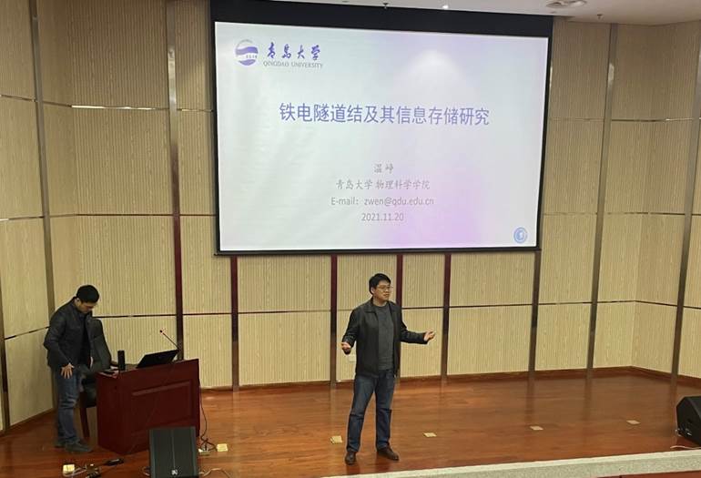 温峥教授,博士生导师,jinnianhui金年会诚信至上物理科学学院应用物理系主任,长期从事电介质材料及相关功能薄膜与器件的科研、教学工作,中国仪表功能材料学会电子元器件关键材料与技术专业委员会常务委员,主要研究工作包括铁电隧道结的高性能、多功能信息存储,外延异质结构中挠曲电极化与应用,CMOS兼容的HfO2基信息存储器件等。温峥教授报告了铁电隧道结的发展,重点讲解了基于金属/铁电体/半导体隧道结的能带结构、高电流开关比值等特性,从实际应用角度出发,探索和揭示了铁电隧道结阻变疲劳的物理机制,并展望了铁电隧穿存储结构的新发展。