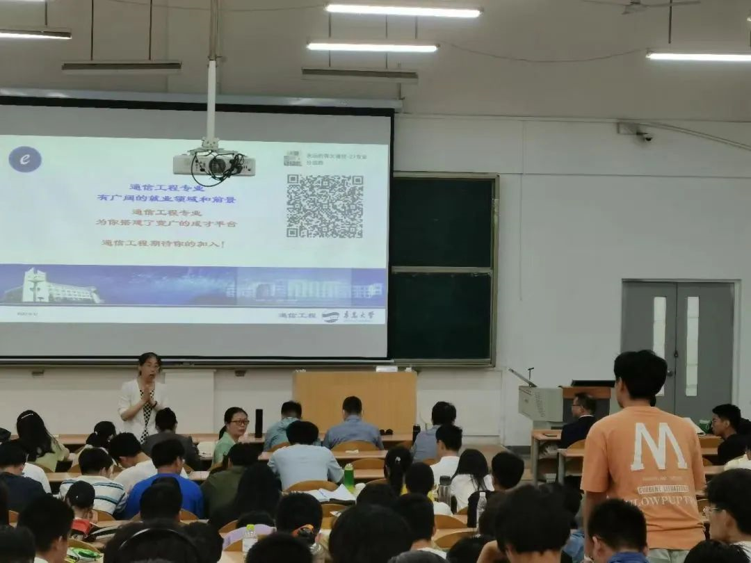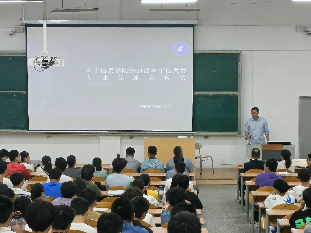 为了帮助同学们更好地做出专业选择和人生规划,创新推动人才培养,6月12日上午,jinnian金年会于金家岭校区一号教学楼111教室召开2021级电子信息类专业分流宣讲会。会议由副院长宿杰主持,党委副书记刘孝群、电子信息工程专业主任迟洁茹、通信工程专业主任李长红、电子信息工程专业教授杨国为、2021级辅导员潘志奎及各专业教师代表出席会议,2021级电子信息类全体同学参加宣讲会。