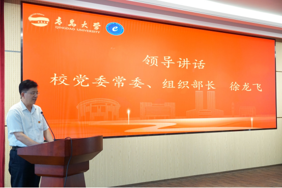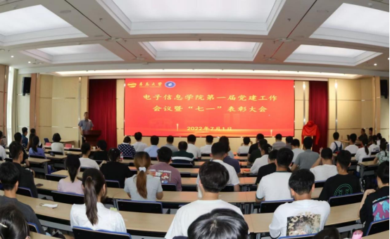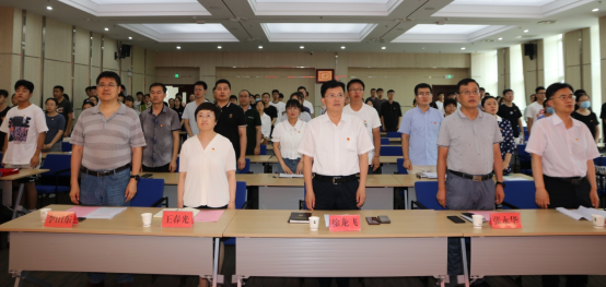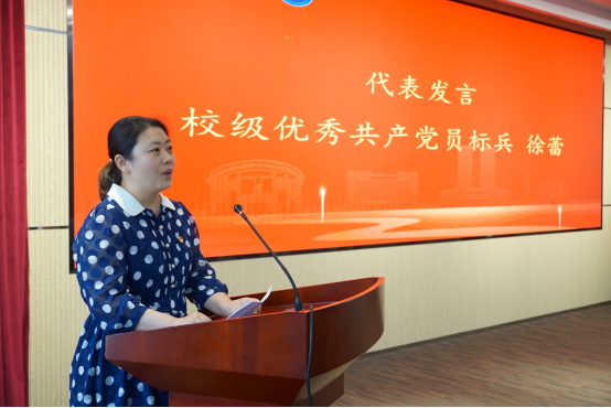 大会在庄严的国歌声中拉开序幕 徐龙飞代表学校向受表彰先进集体和优秀个人表示热烈祝贺,向辛勤奋战在工作岗位上的广大党员表示衷心感谢和节日问候,并就进一步做好学院党建工作提出希望:一是要着力加强领导班子建设,用习近平新时代中国特色社会主义思想武装头脑、指导实践,为学院事业高质量发展提供强大动力;二是要着力加强组织建设和党员队伍建设,作为首批党建工作标杆学院培育创建单位,要继续在长效机制建设、特色品牌凝练、支部规范化建设上下功夫;三是要着力加强人才队伍建设,重视教师思想政治工作,加强青年教师培养;四要着力抓好安全稳定工作,严格落实意识形态工作责任制,落实各项安全措施,做好常态化疫情防控,以优异成绩迎接党的二十大胜利召开!