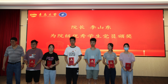 李山东为院级优秀学生党员颁奖。