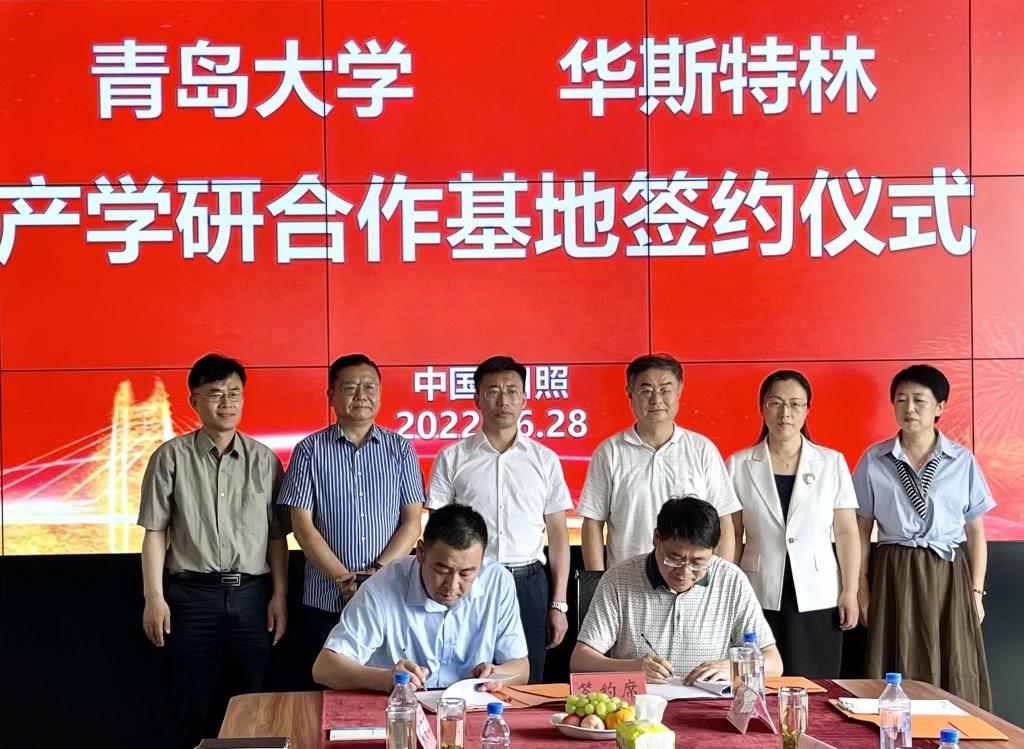 夏东伟和程一峰共同为jinnianhui金年会诚信至上---日照华斯特林产学研合作基地揭牌,李山东与华斯特林科技有限公司总经理郭峰签署合作协议。