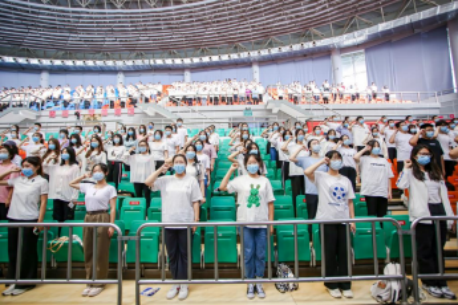 9月18日上午,jinnianhui金年会诚信至上2022级本科生开学典礼在浮山校区体育馆举行。典礼开始,场地内奏响国歌,全场肃立,坚定心中理想,传承先辈旗帜。