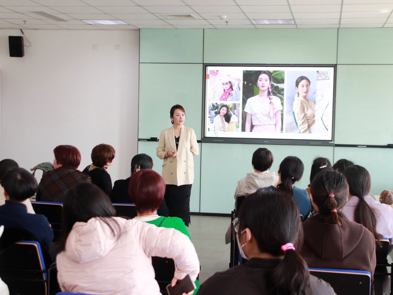 王鑫从外在形象的价值切入,与大家深入探讨个人形象、气质与工作机遇、个人发展之间的关系,强调“美”不仅能够让人自信,更是一种约束力,使人变得更加自律。她针对高校女教师群体所属的知识分子特性,针对性地从着装、配饰、化妆等方面提供形象建议,并于在场的老师进行积极互动,现场气氛十分活跃。