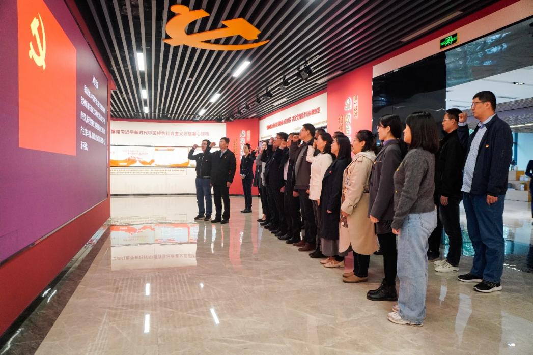 揭牌仪式后,基地教师和与会同志们共同上了创新体验课程《心长征》《爱的深度:一封家书》,参观了“时代先锋” 5G高新视频党建基地教育展厅,重温了入党誓词。