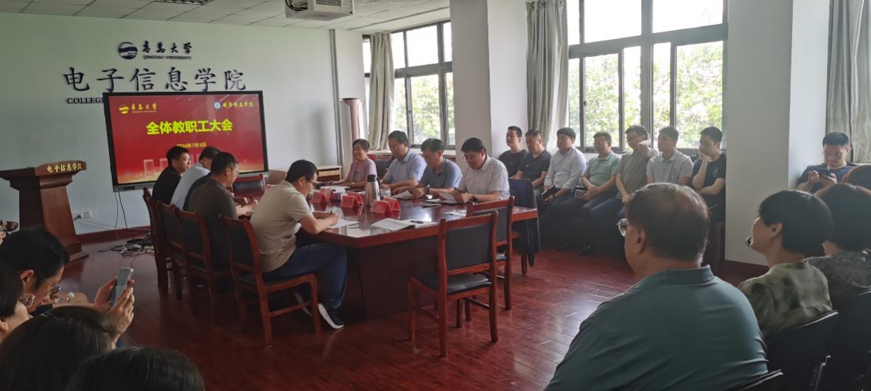 7月3日上午,jinnian金年会在诚思楼407会议室召开全体教职工会议,宣布校党委关于学院党委书记职务调整的决定。校党委常委、副校长李建波出席会议并讲话,学院党委副书记、院长李山东主持会议。