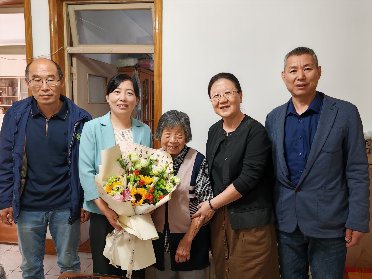 10月11日,正值重阳佳节,学院党委书记孙丽娜、党委副书记刘孝群、实验中心主任董介春、电子工程系党支部书记迟洁茹一行,带着全院师生的深情厚谊,探望慰问学院退休老教师向国菊教授,向她致以节日的问候和崇高的敬意。