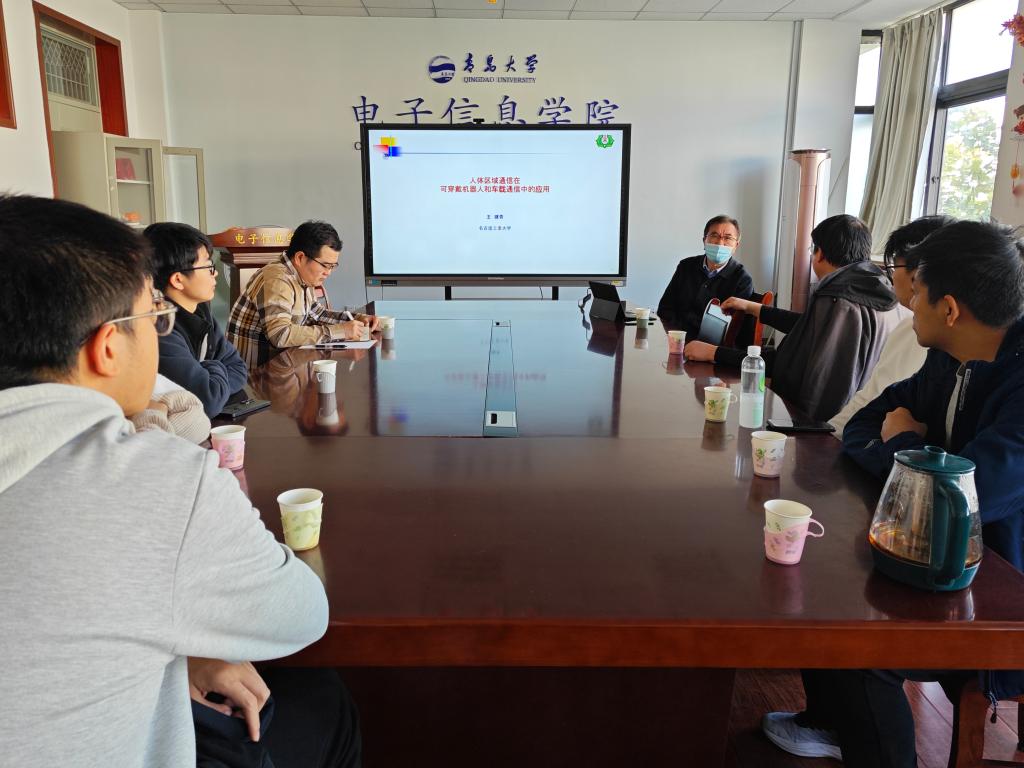 2025年10月28日上午,日本名古屋工业大学王建青教授应邀莅临jinnian金年会,在诚思楼407会议室做了题为《人体区域通信在可穿戴机器人和车载通信中的应用》的报告。报告会由院长李山东主持,副院长姚钊和师生代表聆听了报告。