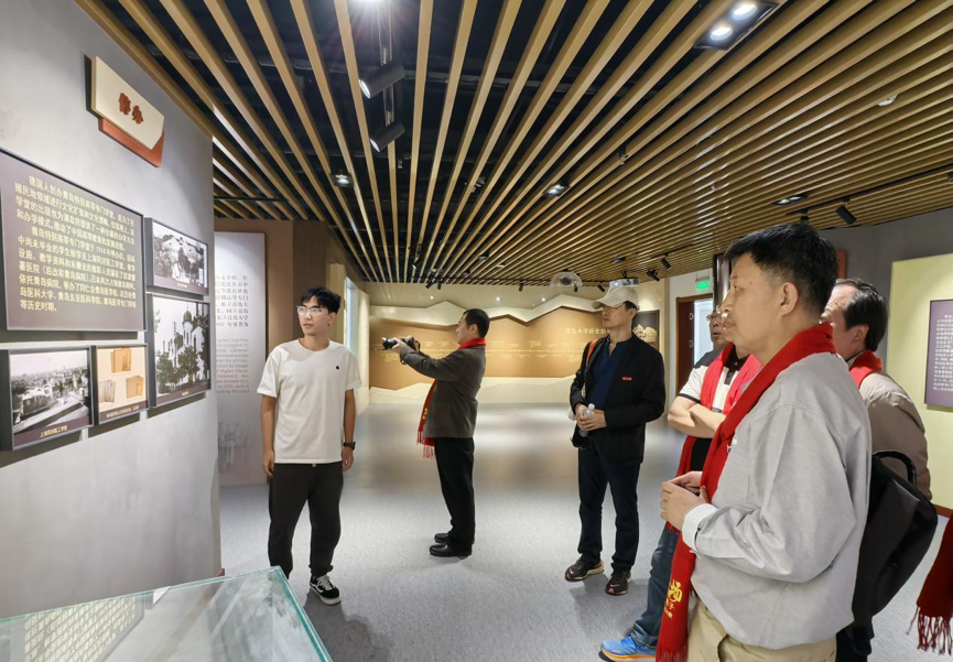 紧接着,校友们参观了校史馆,了解了学校的发展历程和取得的辉煌成就。他们为母校取得的进步和荣誉感到无比自豪。在参观过程中,青岛天高智慧科技有限公司总经理、我校90级电子信息与通信专业校友矫升法先生带领大家共同回忆了入学迎新、日常学习、生活娱乐等场景,并代表全体校友向母校的培养和关爱表达了诚挚的感谢。同时,他也向为本次返校活动提供帮助的会务组全体成员表示了衷心的感谢。