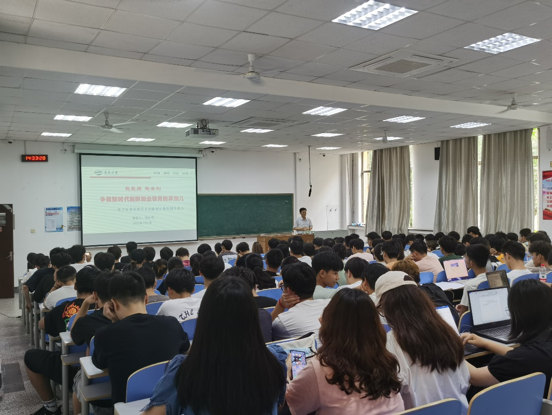 为培养学生创新意识,提高学生创新能力,在学院营造创新创业的良好氛围,7月4日下午,学院党委书记张启春在博知楼101教室以《我敢闯 我会创---争做新时代创新创业教育的弄潮儿》为题,结合在校学习工作和自身指导创新创业的经历,用生动形象的事例与同学们分享了创新创业经验和体会。全院近500名师生通过线下和线上的方式参加讲座。
