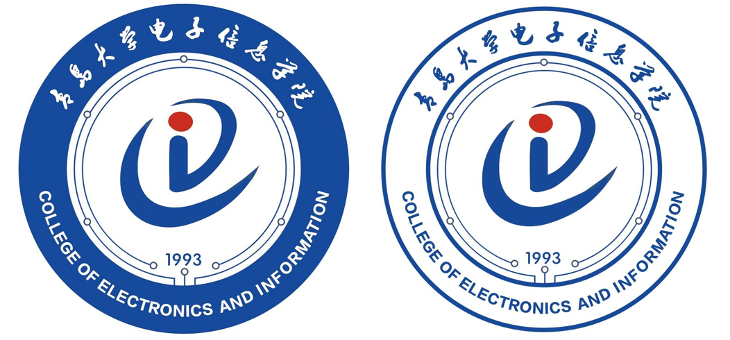 3. 院徽内圆由小写字母“e”和“i”组成,分别代表electronics(电子)和information(信息),外围圆圈代表电路,是电子信息学科发展的基础。整体采用深蓝色, 给人视觉上的科技感和未来感,象征学院专业与人类的科技未来息息相关。